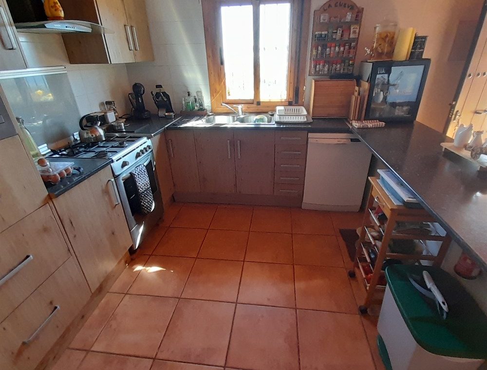 La maison dispose de 3 chambres, salon ouvert et coin cuisine avec une grande cheminée, 2 salles de bains (une en suite), salle à manger et cellier.