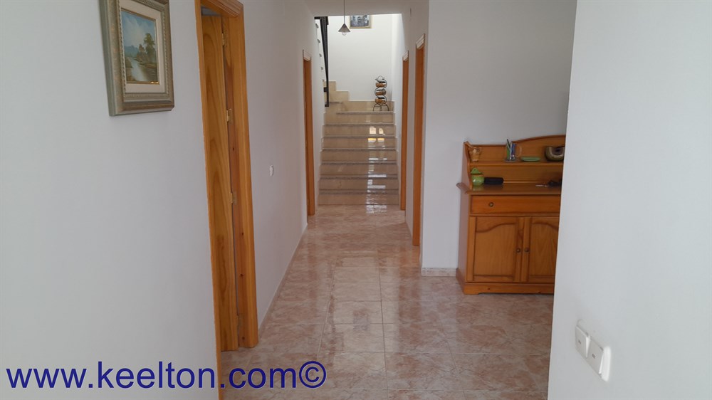 Cette propriété a au rez-de-chaussée: un salon avec une cheminée, 2 chambres de bonne taille une salle de bains et une cuisine menant à un espace patio. L’étage supérieur dispose de 2 autres chambres, salle de bains et une grande terrasse avec une vue magnifique.
